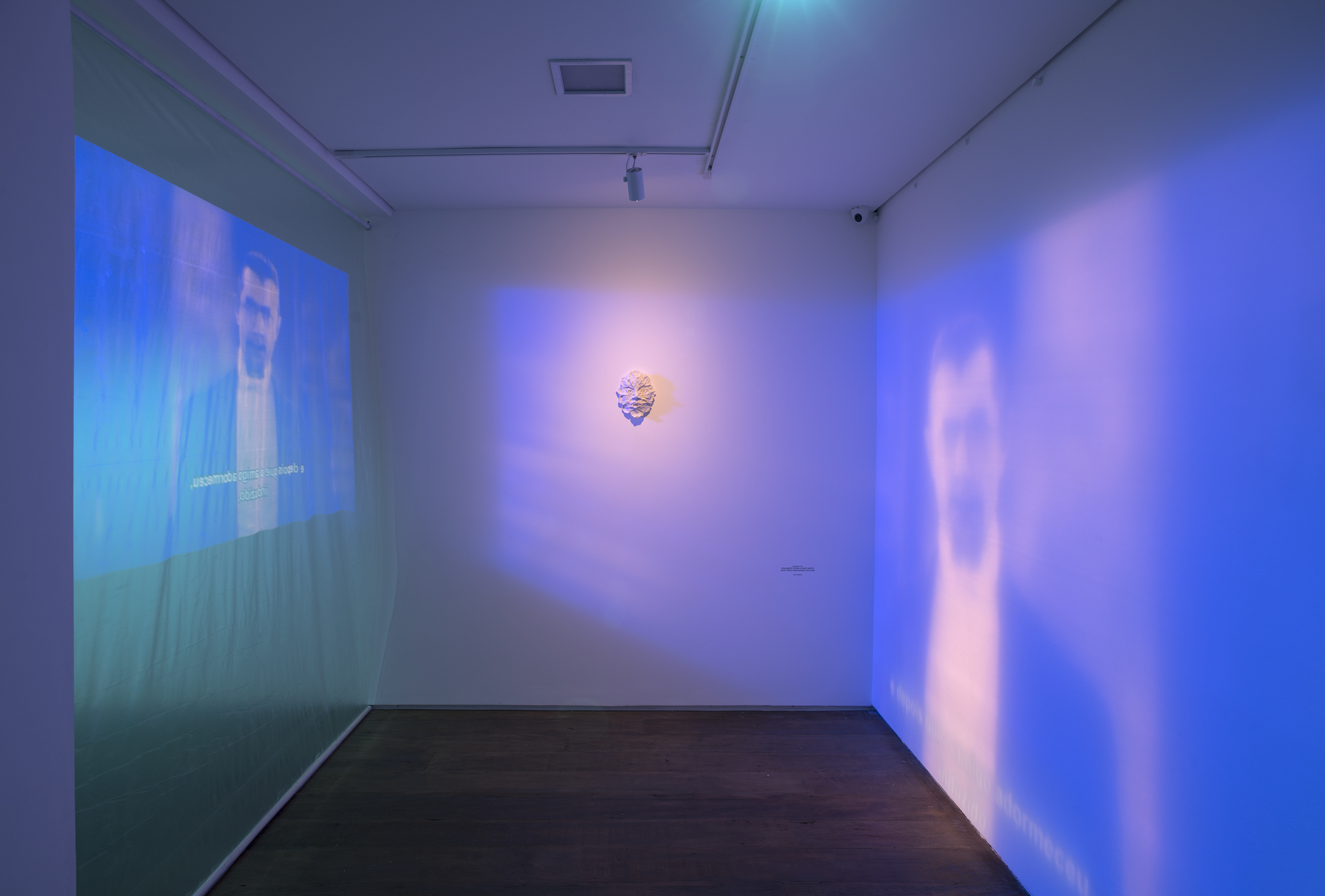 The installation La charada china (2018/2023) occupied another room where reflective film covered pink-lit walls. Visitors were invited to play a dice game on a central clay sculpture while ethereal footage played across the reflective walls. The work’s title nods to the gambling game popular in Cuba, introduced by 19th century Chinese immigrants when they arrived for forced labor. According to a booklet about the game, included in the installation, visitors can play La charada china “for money” or “for dreams and spirits.” Dice could fall through carved indentations in the clay table, which together evoked the shape of an absent human body. Its form recalled the figure printed on Cuban lottery tickets, a derogative image of an Asian immigrant with an opium pipe wearing clothing typical of the Qing dynasty. [2] By highlighting this game, Lin underscores the blending of Asian influences with Latin American ones, resulting in a contaminated epistemology that resists the European sense of purity.