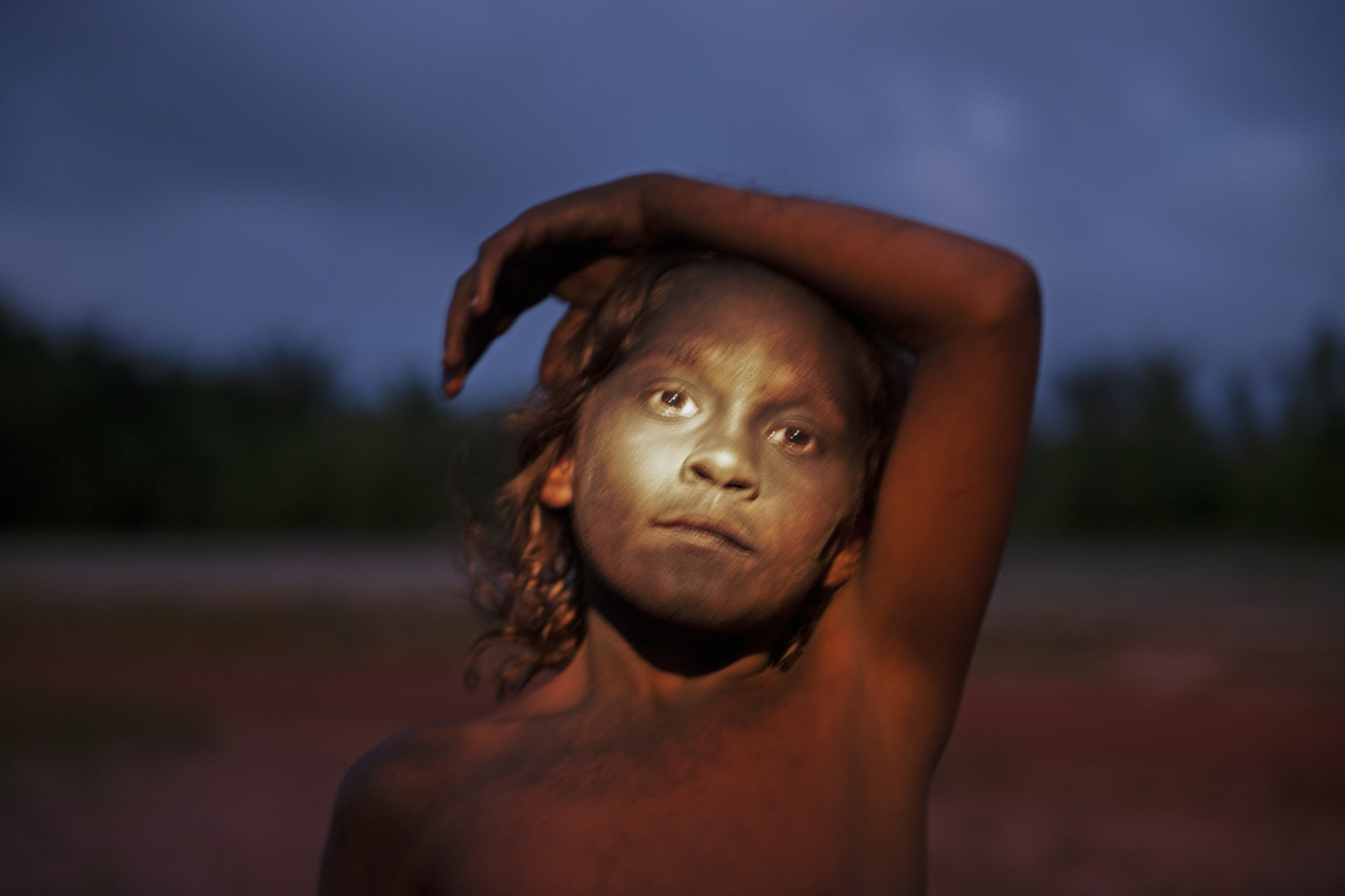 Do mesmo modo, instrumento de encantamento, o espelho acompanha as usuais narrativas de sedução por parte dos europeus na invasão do Brasil, utilizando-o como arma colonizatória camuflada de presente. No universo criado por Luiz Braga, essa mesma fascinação narcísica de quem se olha no reflexo da água ou do metal é presente nas casas interioranas, em espelhos defronte aos quais seus moradores se vestem com as melhores roupas e meticulosamente se penteiam para as festividades, eventos de alegria que Braga escolhe perpetuar.